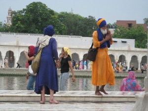 Si esto no es un curso de Antropología 101, no me explico qué será. Estamos en Nueva Delhi. Es otra dimensión, esto aquí. ¨Shukriya, Govind¨, le digo a nuestro nuevo amigo, encargado del hotelito donde nos estamos alojando, que queda justo enfrente a un crematorio enorme. Somos mochileras, y claro, el presupuesto apenas alcanza. Sin embargo, con una sonrisa basta. Govind nos ha ayudado a aclimatarnos perfectamente bien. Por su recomendación llegamos al Templo de Oro, la hermita mayor de los Sikh. En el poco tiempo que llevo aquí, observo cómo se me hace casi imposible diferenciar e identificar los grupos culturales/religiosos/espirituales, como quieras llamarle, que conviven en este país. El número es infinito. Sólo sé una cosa. Todo es símbolo. Todo es identidad. Los sikh, por ejemplo, nunca se cortan el cabello. Se lo amarran en forma de dona en el tope de la cabeza y luego lo cubren con un turbante. Llevan una espada pequeña que cuelgan del pantalón. Incluso los niños! Ah, y una pulsera de plata o cobre en la muñeca derecha (kara). Tampoco se afeitan la barba ni el bigote. A primera vista, las mujeres son igualitas a las hindúes. Visten saris brillantes y todo el resto del ajuar, la joyería, bindis, etc. La verdad es que aún no logro identificarlas. La identidad femenina es anónima, oculta, mientras que la del hombre parece ser uno de los rasgos más fehacientes de esta sociedad.
