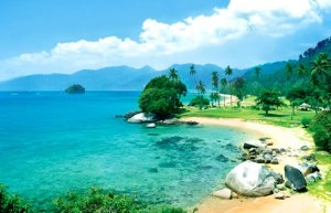 Tomamos un ferry de Mersing a la isla de Tioman (dos horas aproximadas). Me quedé dormida en el trayecto y una vez abrí los ojos me encontré con una de las vistas más surreales del mundo. Parece un lienzo esta islita: vegetación fosforescente, palmeras sobre enormes piedras calizas, monitos que cuelgan de las bambúas y pequeñas chozitas, donde nos alojamos. Una pena que mi compañera de viaje es la persona más aburrida del mundo, pero bueno, intento disfrutar lo máximo sin incluir sus malas vibras en mi burbuja. Nos bajamos del ferry en la última parada, Selang, y rápidamente un chico nos llevó a los ¨bungalows¨. El mar parece un espejo; la arena, talco.