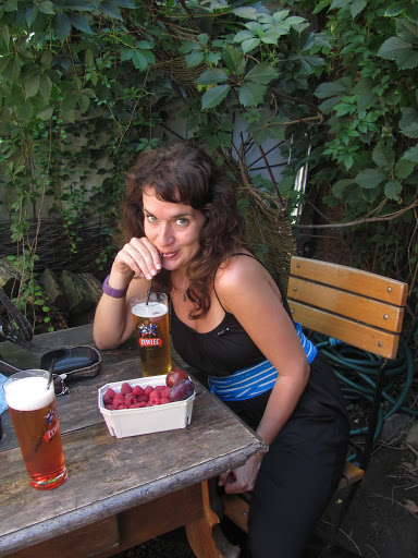 y tomar una cerveza de barril y comer frambuesas por montones en barcitos al aire libre