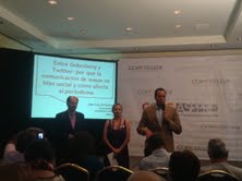 «Entre Gutenberg y Twitter: ¿Por qué la comunicación de masas se hizo social y cómo afecta el periodismo» fue el título de la conferencia magistral que presentó el profesor de la Facultad de Comunicaciones de la Universidad de Navarra, José Luis Orihuela, para la Primera Convención de Periodistas de Puerto Rico, hoy 3 de agosto en el Hotel Mariott de San Juan. Oriundo de Argentina, a Orihuela se le considera el gurú del periodismo cibernético. Fue mi profesor en la UNAV en el 2009 y fue un gusto darle la bienvenida por primera vez en la isla del encanto como conferenciante de este evento. La charla, desde luego, resultó ser un éxito rotundo acaparando la atención de todo el público presente que incluyó profesores, reporteros, estudiantes de periodismo y otros comunicadores públicos. Durante las dos horas en las que el profesor de comunicación multimedia expuso se presentaron una amplia gama de temas que abordaron el proceso histórico de la imprenta en el siglo 15, tarea a la que se ocupaban los monjes copistas en Alemania, hasta pasar por otros temas más recientes como la sinergia entre las nuevas y viejas tecnologías, los cambios de paradigma en el oficio periodístico, las transiciones de los medios sociales y por último, la importancia de la marca.