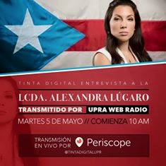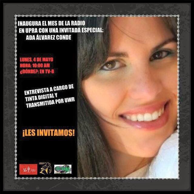 Con motivo del Mes de la Radio en la Universidad de Puerto Rico en Arecibo, Tinta Digital, el blog que gestioné con mis alumnos de periodismo, estará a cargo de entrevistar a dos grandes figuras de la historia contemporánea puertorriqueña: la periodista y defensora de derechos humanos, Ada Álvarez Conde y, la licenciada, Alexandra Lúgaro. Ambas entrevistas serán transmitidas por UPRA Web Radio y por Periscope.