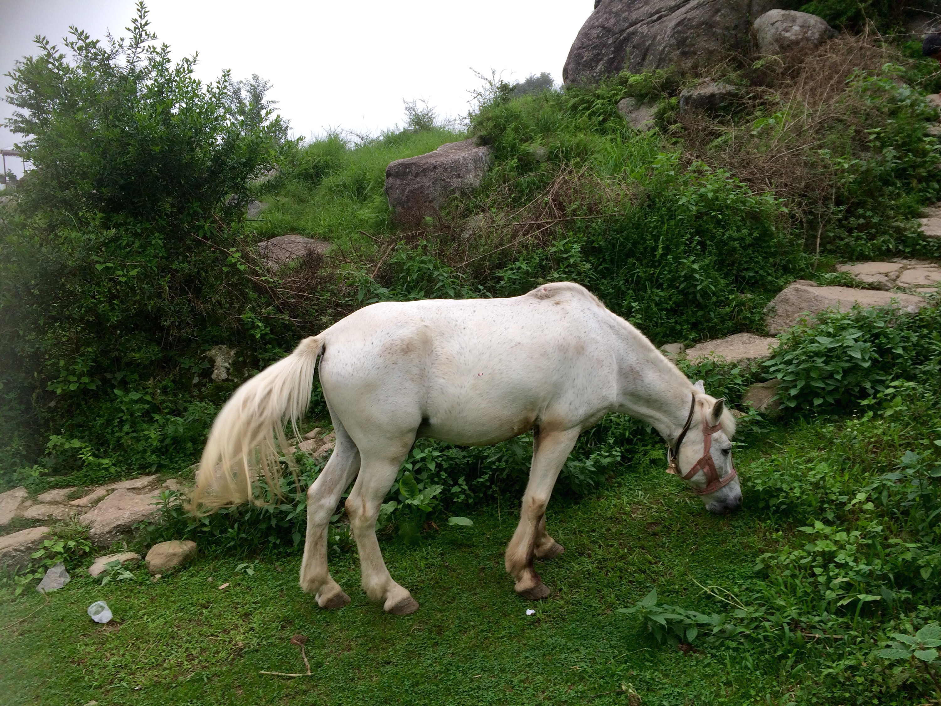 Para llegar de Bhagsu a Once in Nature tuve que hacer una pequeña expedición entre rocas, montañas y cardos espinosos que me hincaban los pies. En el camino me topé con vacas, cabras y hasta un caballo blanco que parecía sacado de una película del Señor de los Anillos. No había letreros por ninguna parte y en un cierto momento, me detuve entre las nubes y juré que estaba soñando.