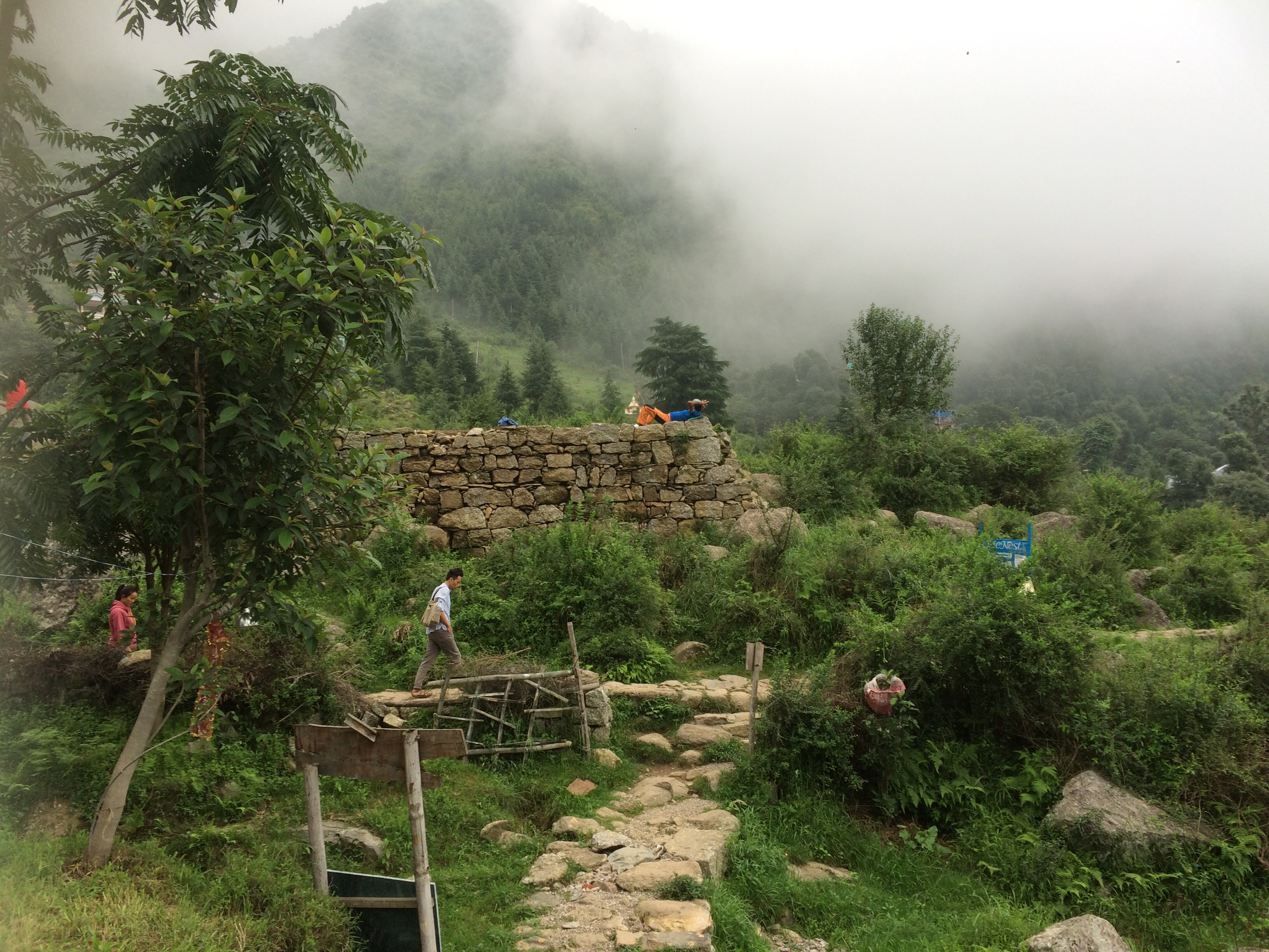 Finalmente, ya al tope del monte, me crucé con un espacio abierto donde un grupo de niños locales jugaba cricket. Al costado observé sembrados de maíz, cáñamo, pinos y otros árboles endémicos. Las nubes me arropaban. Decidí subir con dos amigos al tope de una roca. Más tarde bailamos música trans mientras un saddhu cantaba mantras en una tarima, tomamos té de especias, batidas de frutas, picamos platos tibetanos veganos y conocimos gente local super interesante. Desde gurus, yogis, hasta músicos, otros turistas de Israel, indios que vacacionaban por la zona y locales hospitalarios e interesados en compartir experiencias con nosotros.