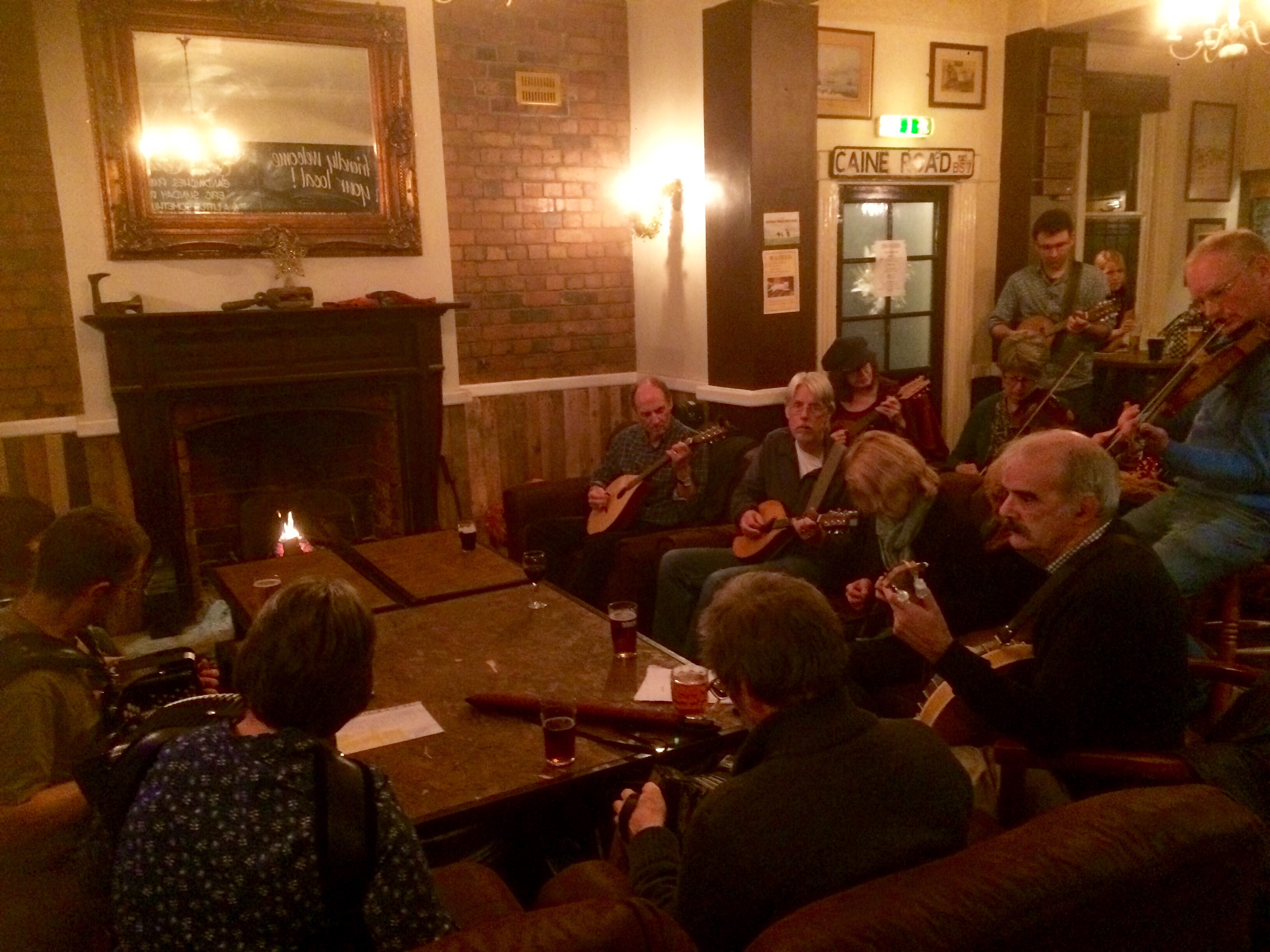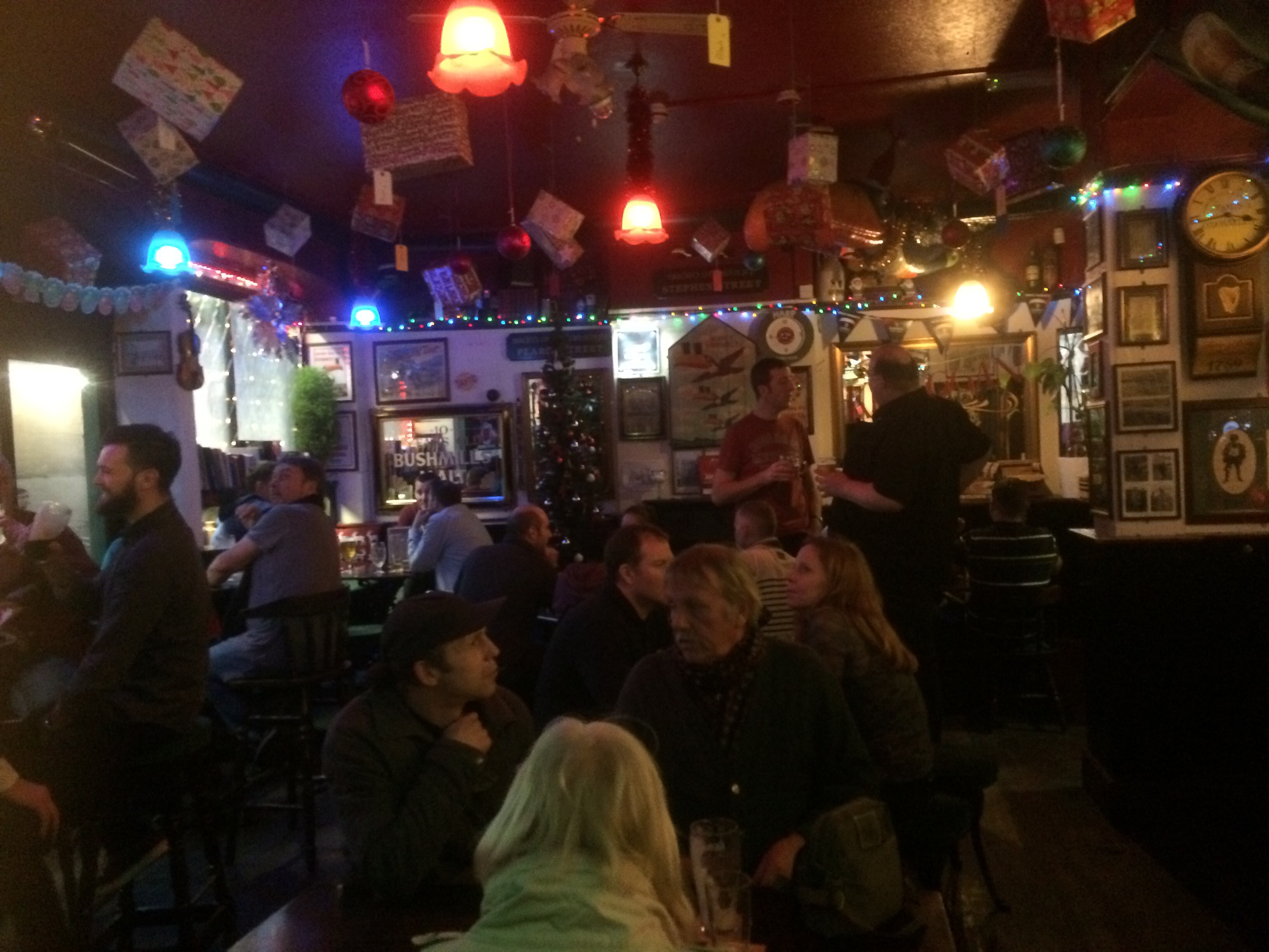 De noche el pub se transforma en mil y una cosa. Puede ser lo que quieras. Una pista de baile, una tarima para el dj, un centro cultural donde los senior citizens juegan bingo, un espacio en el que familias se juntan a despedir a un recien difunto, una extensión de la cancha de fútbol para los aficionados del Liverpool o el Chelsey, el refugio de los solitarios, los borrachos, los desconsolados. Una noche en Bristol, el pub llegó a metamorfosearse en un concierto de música tradicional inglesa, donde mandolinas, banjos, violines, guitarras y otros instrumentos unen cada mes a un grupo de vecinos locales.