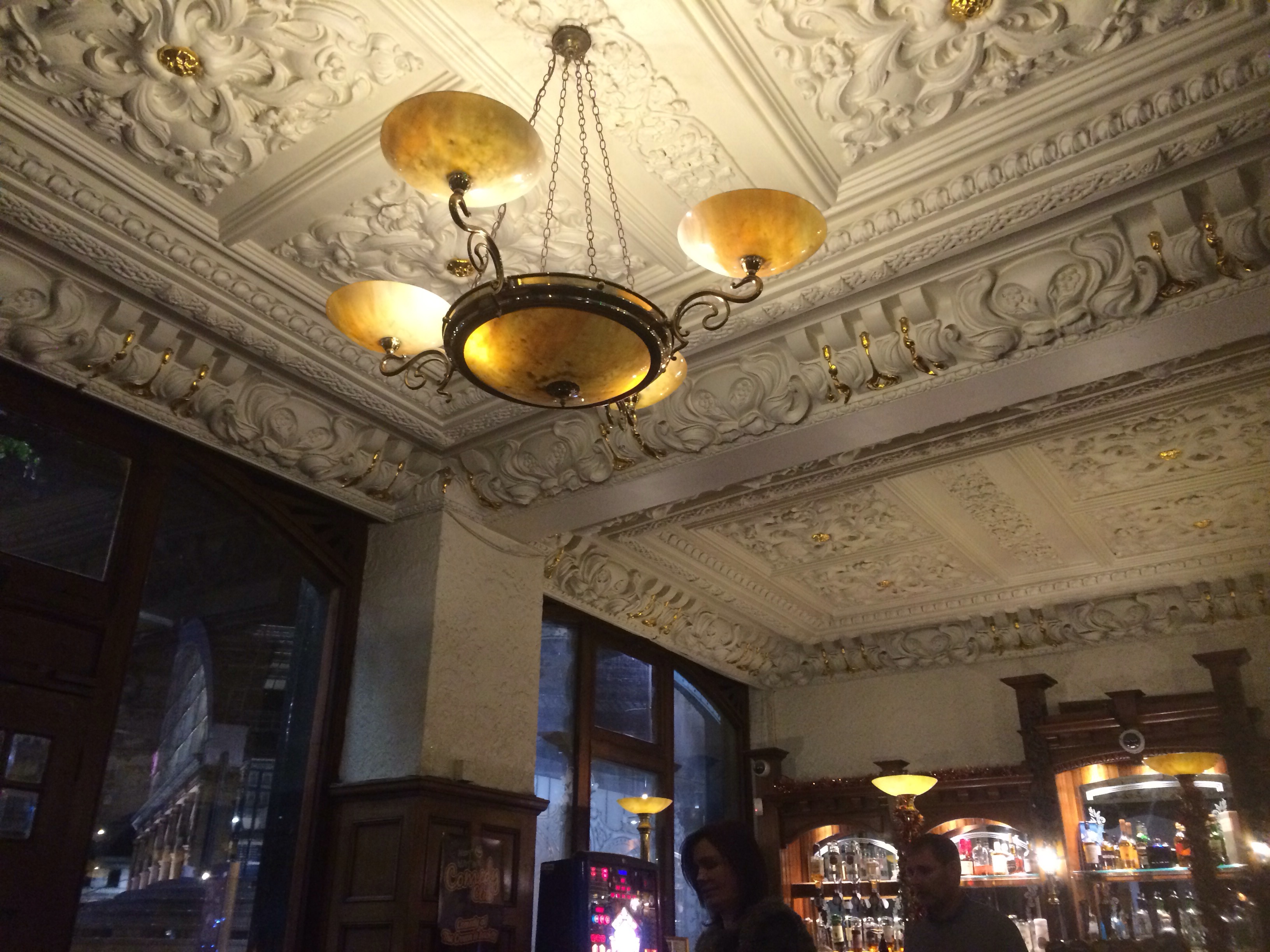 A medida que iba pasando el día y después de caminar por todo Londres, Bristol o Liverpool, regresa el hambre y las ganas de sentarse en un espacio tranquilo a escribir, leer un libro o simplemente, observar. Mi mejor opción sin duda alguna era, nuevamente, el pub. A veces pedía un plato de fish and chips, en otras ocasiones un té o una Guinness. A mi alrededor jugaban niños, mientras sus padres conversaban, lanzaban dardos o miraban la pantalla de televisión. El pub es un espacio para todos. Las sillas o sofás son cómodos, la luz es casi siempre tenue o templada y da la sensación de calentarte por dentro, la variedad en cuanto a cervezas es impresionante y la comida, por lo general, es buena también. La decoración de los pubs es solemna y representa también la cultura inglesa; los cristales opacos o de grabados elaborados, aportan además al ambiente acogedor e íntimo de este espacio. El pub te permite escapar del frío, del enclave de casa y conectarte con el vecindario, los amigos, la familia y los desconocidos.