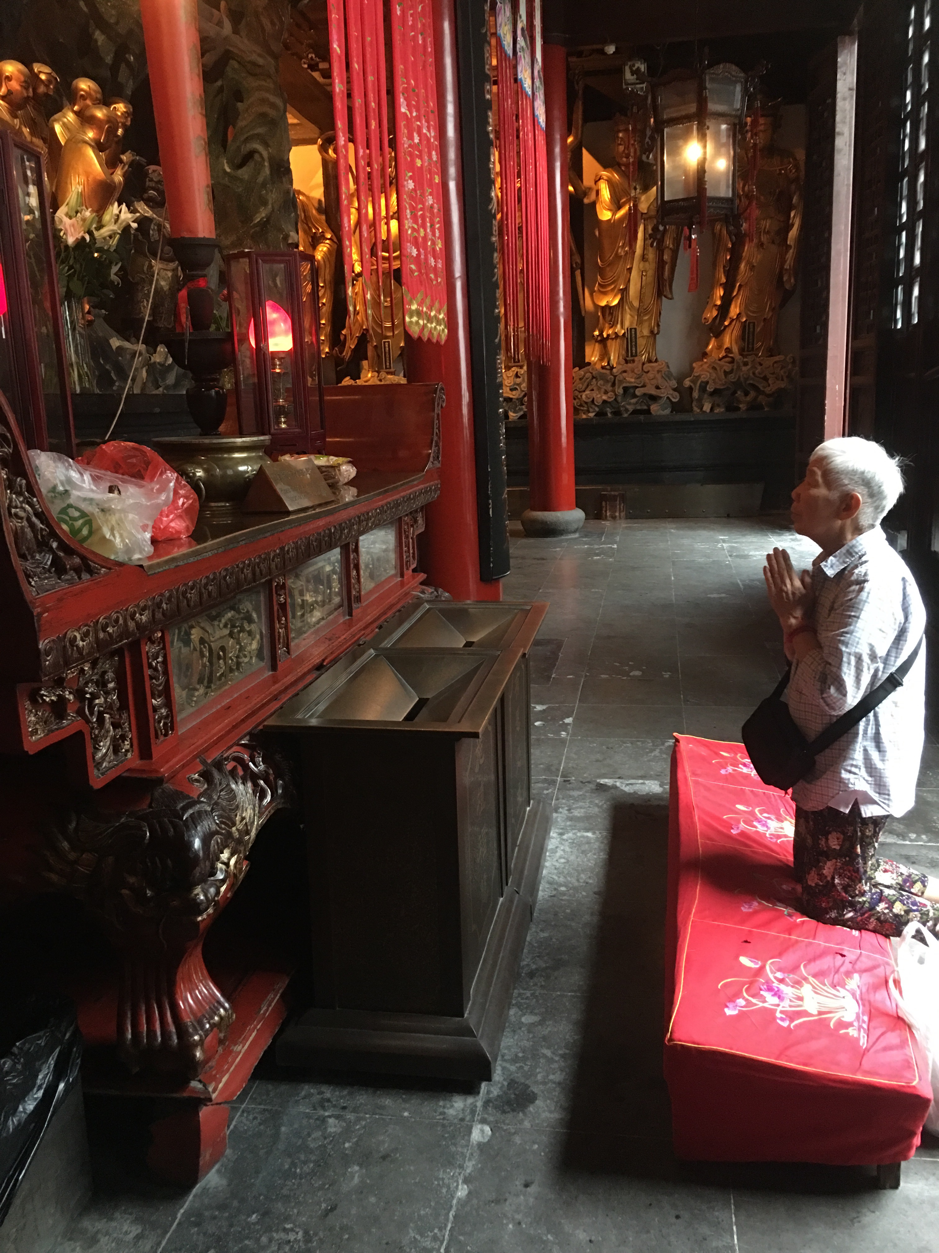 Mujer budista reza en el Templo de Jade.Otro lugar de atractivo para aquellos interesados en conocer sobre los 5,000 años de historia de China es el Museo de Shanghái, localizado en la popular People’s Square. El edificio contiene cuatro plantas y cada una con varias exhibiciones de: bronce, cerámica, arte clásico, monedas, caligrafía y jade. Algunas de las salas más seductoras, sin embargo, son las de muebles, esculturas y folclor de las etnias minoritarias del País.
