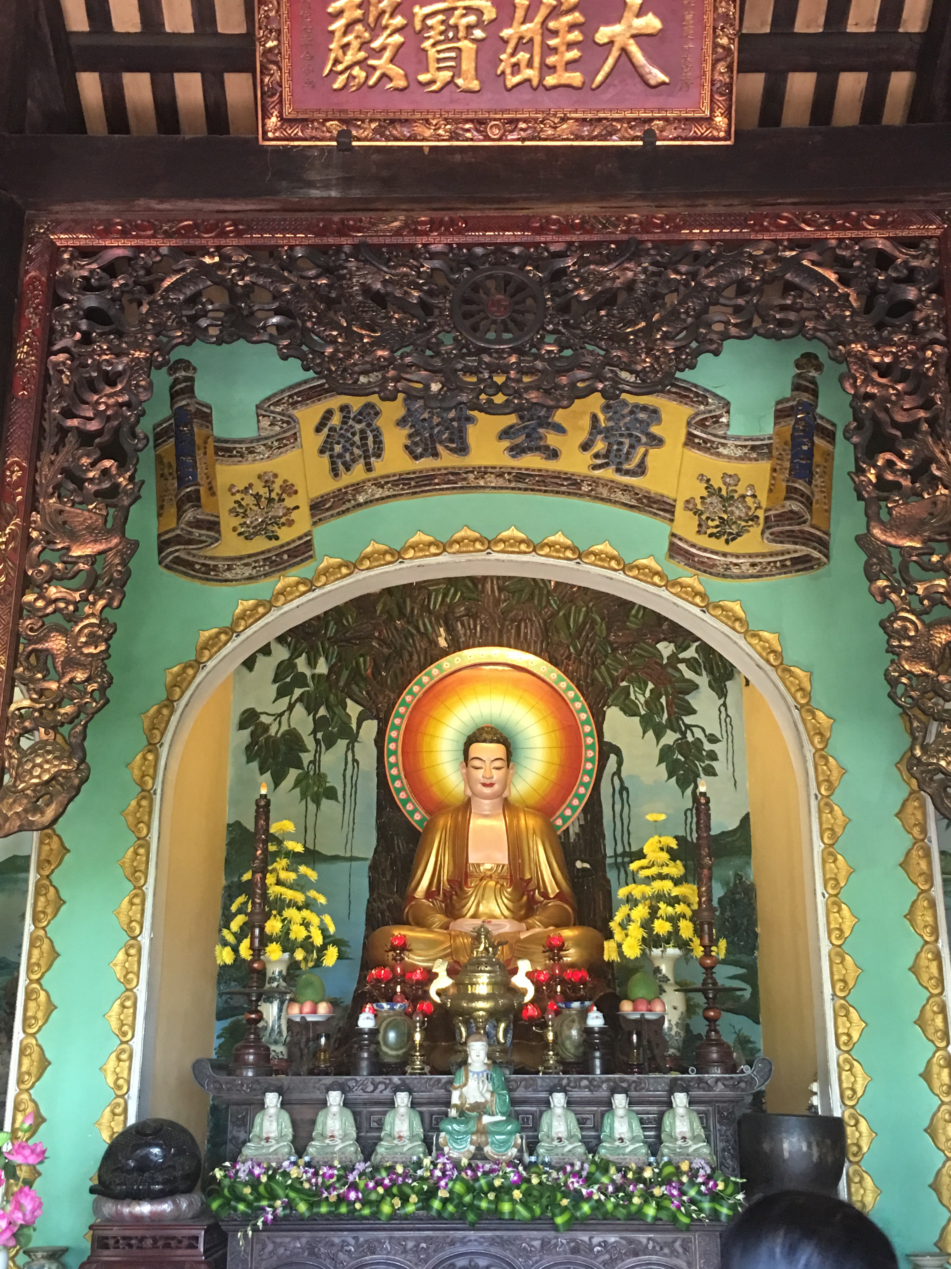 A mi derecha yace una pagoda. Estatuas del buda indio descansan al lado de altares con caractéres chinos, incienso ardiente e imágenes de otras deidades que desconozco. Sincretismo en su esplendor es el Cao Daísmo: una popular fusión religiosa de este y oeste, nacida en la Vietnam del siglo XX que refleja elementos dispares del Budismo, Confucionismo, Taoísmo, Cristianismo, el Islám y también la espiritualidad animista. Los seguidores de esta fe persiguen escapar del ciclo de la reencarnación tras una vida ordenada, justa y equilibrada.