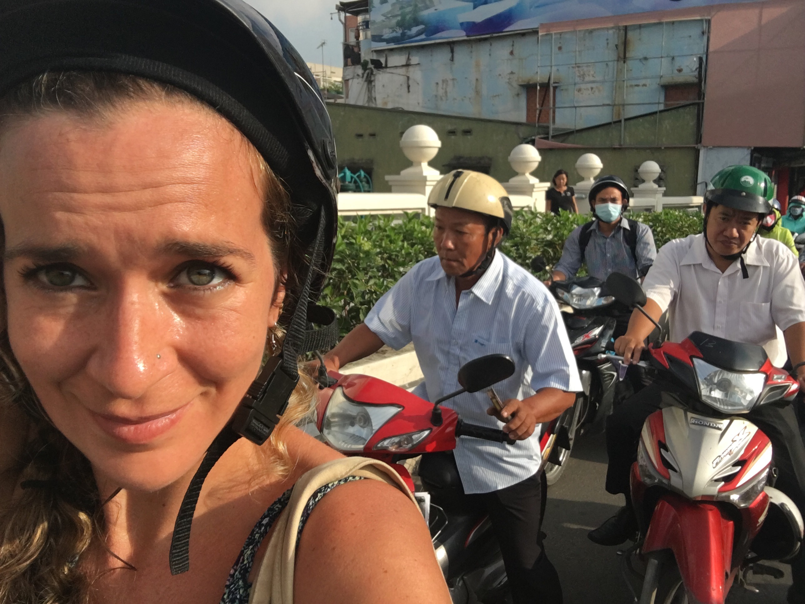 Tras pasar día y medio en Saigón descargué la aplicación Grab en mi iPhone por recomendación de mi anfitriona en esta ciudad. Entre medio de WhatsApp y Messenger hallé un nuevo logo de fondo blanco y letras verdes: GRAB. Una vez fui localizada en la dirección de mi Airbnb, introduje mi destino. Al cabo de unos segundos aparecieron seis opciones al fondo de la página que incluían una muy atractiva y no-disponible en Uber: «Grab a bike». Pulsé nuevamente para confirmar el pedido y tras unos instantes, arribó a la puerta de mi hospedaje un hombre canoso de tercera edad sobre una motora. Sin intercambiar ninguna palabra aparte de «Hello», me entregó un casco y en un abrir y cerrar de ojos me encontré en la parte trasera de su moto con la brisa torciéndome el pelo y una enorme sonrisa de oreja a oreja.