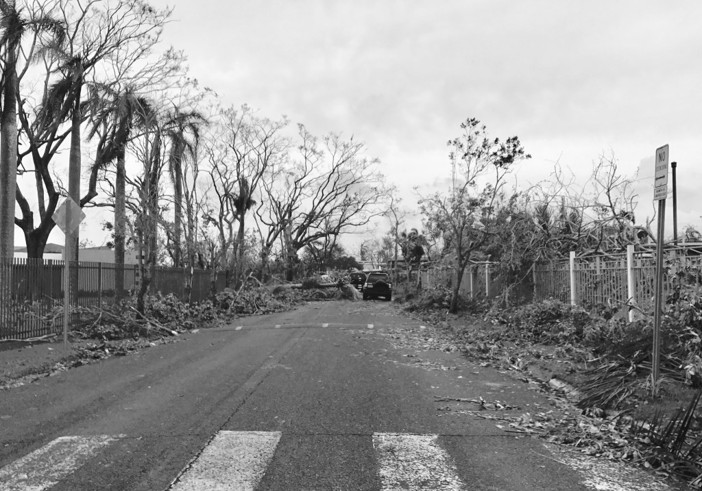 Los negocios que han abierto durante estos cinco días pueden contarse con los dedos de la mano. La mayoría no ha podido abrir sus puertas al público por dos motivos: o han sufrido graves daños de infraestructura que se los impide, o se han quedado sin diésel para alimentar sus generadores eléctricos. Las filas en las gasolineras son kilométricas. Algunos cuentan que se levantan antes de las 6 de la mañana, esperan hasta cuatro horas y cuando llegan al inicio de la cola se les anuncia que no queda abastecimiento o que solo pueden llenar el tanque con $5. Ya se han reportado peleas entre individuos descontrolados por este asunto. Hace cinco días se nos impuso además un toque de queda que dura doce horas diarias: de 6 a 6. Esto para evitar los atracos que han acontecido con encapuchados que penetran en urbanizaciones adineradas a robar generadores, cisternas y otros artículos de interés. Además, el intento por controlar el movimiento de personas en la oscuridad representa un esfuerzo por minimizar los daños que puedan ocurrir al transitar por vías obstruidas por escombros, árboles, tendidos eléctricos y otros objetos que fueron desgarrados y arrastrados por las ráfagas. De día la lucha es intensa. El calor va aumentando con el paso de las horas y ante los inminentes efectos de la deforestación. Cuando entra el hambre, avalanchas de personas desesperadas hacen colas eternas en los pocos locales abiertos que venden comida, café y otros artículos racionados. Ayer tardé una hora en Subway para conseguir dos sándwiches y dos cafés; hoy tardé otra hora en la fila del supermercado donde conseguí una que otra cosa para apaciguar el hambre y el aborrecimiento del letargo. La verdad es que tuve suerte porque dos horas, no son nada. Eso me dicen algunos vecinos. Parece ser como si la noción del tiempo y el espacio se han trastocado por esta nueva realidad. Tendremos que borrar de nuestras mentes lo que una vez fuimos y tuvimos para asimilar la nueva forma en que nos transformaremos. No nos queda más remedio.