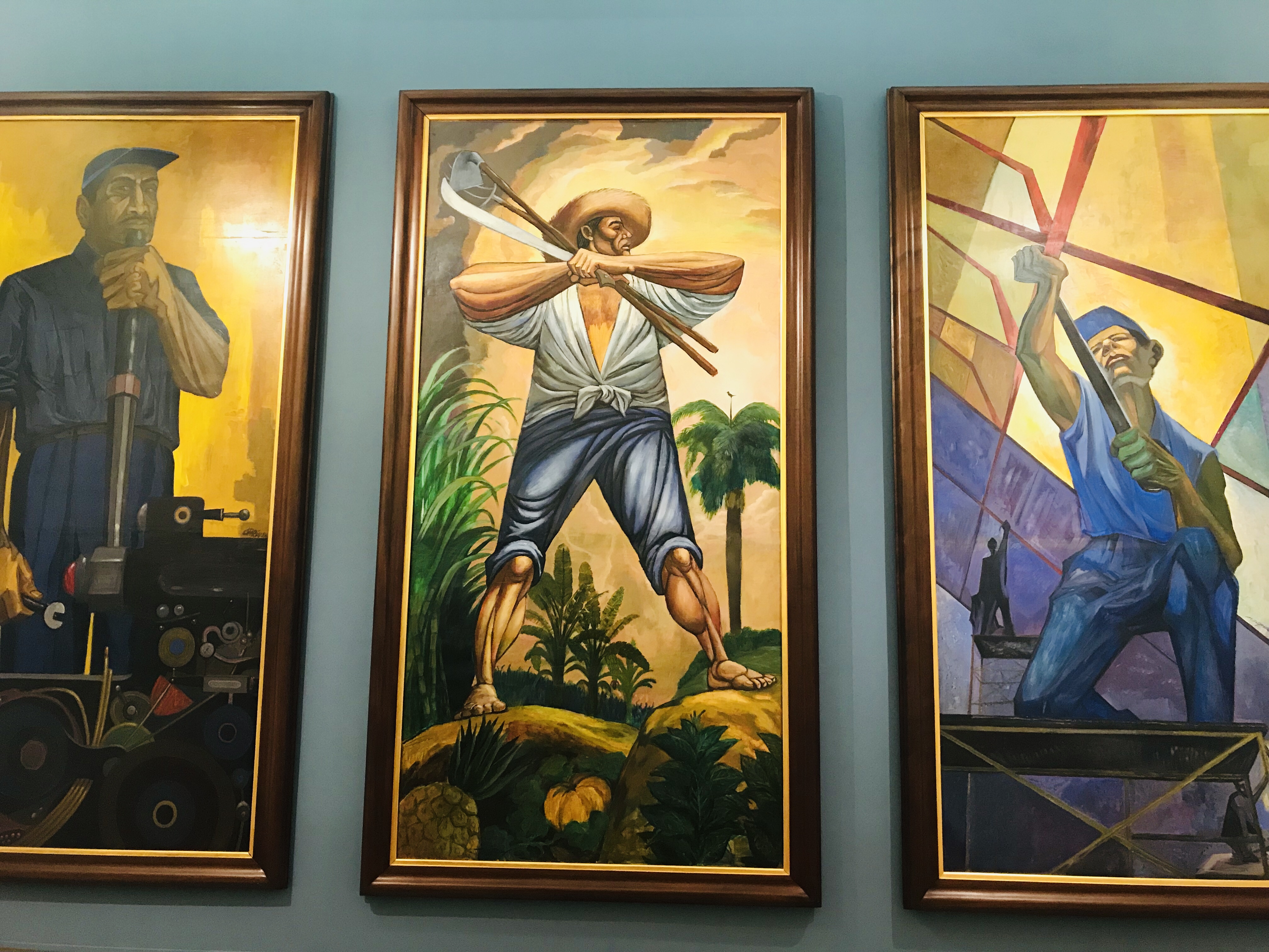 A pesar de contener obras de muchos artistas puertorriqueños actuales, Puerto Rico Plural hace también homenaje a las grandes figuras, como: Lorenzo Homar, Myrna Báez, José Campeche y una vez más, Rafael Tufiño. En un tríptico que une las obras de: Carlos Raquel Rivera (La industria), Augusto Marín (La agricultura) y Rafael Tufiño (La construcción), vemos nuevamente la influencia del cubismo y el muralismo mexicano, en el que los tamaños enormes de los protagonistas dan la impresión de endiosarlos. Tanto la industria, como la agricultura y la construcción representan los tres pilares de nuestra migración interna en Puerto Rico: del campo a la ciudad. Pareciera ser que el puertorriqueño está siempre migrando, en constante limbo, con un pie aquí y otro allá. Nuestro estatus colonial combinado con una historia plagada de conquista e invasión, permite que tracemos paralelos entre ese pasado y el presente, por medio del arte histórico y también contemporáneo.