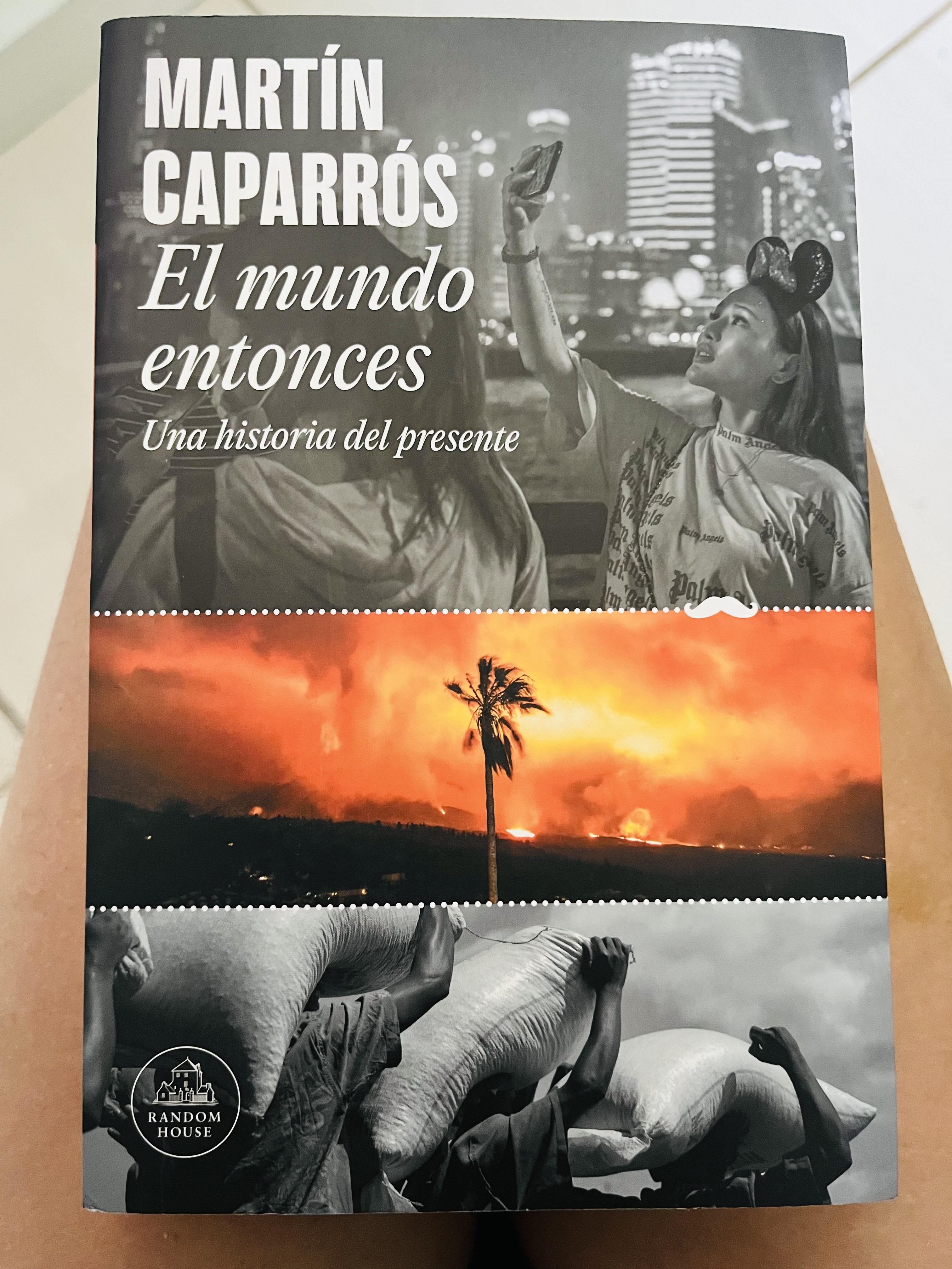 El mundo entonces. Una historia del presente (Random House) contiene un collage tríptico en la portada. Aparece una mujer de ascendencia asiática tomándose un selfie en la primera imagen; las llamas de un fuego devorándose la tierra en la segunda; y, en la tercera, unas personas que cargan bolsas de plástico con materiales de construcción sobre sus cabezas. Para Caparrós (1957), historiador y periodista, este parece ser el mundo de hoy.