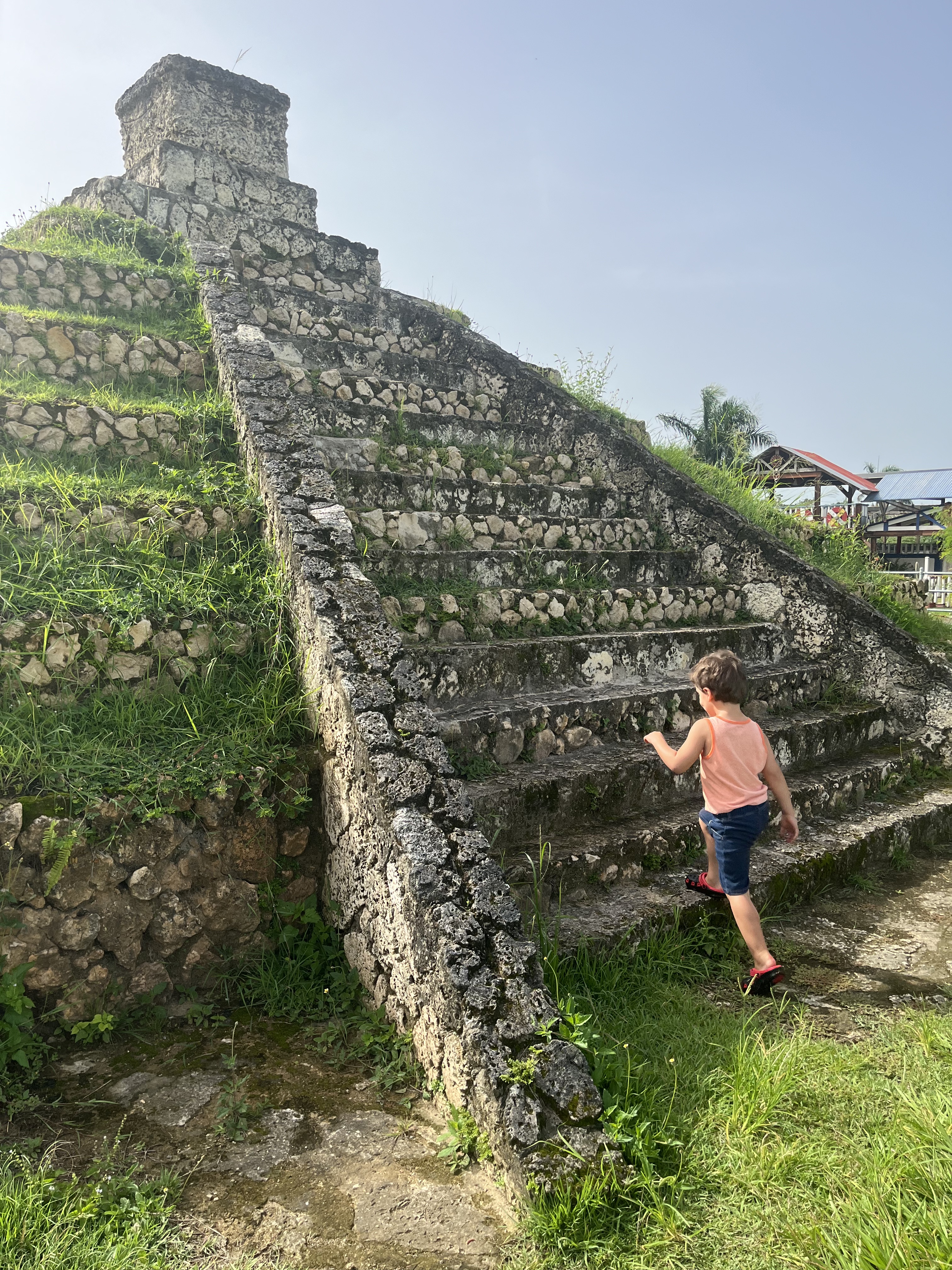 Ayer, visitamos la Pirámide de Aguada por primera vez y nos encontramos a Miguel trabajando en la finca. Amablemente nos permitió acceso a la pirámide e incluso que mi hijo, Noah (3), escalase hasta el tope de la edificación, por una escalera que construyeron en la parte de en frente.