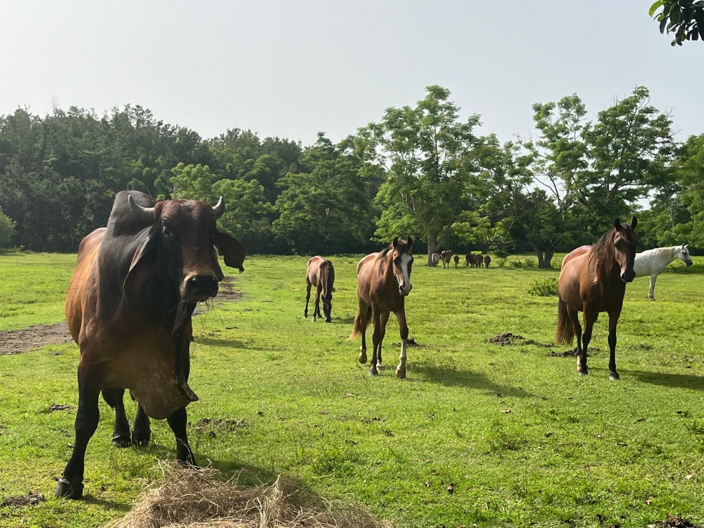 Alrededor de la finca yacen caballos, bueyes y vacas que Miguel cuida y viven armoniosamente entre el valle de Aguada y la pirámide. Miguel siente orgullo por el trabajo que hace y nos quiere mostrar los animales. Con un llamado muy peculiar, nos enseña cómo se comunica con ellos y les alerta que se acerquen a comer heno.