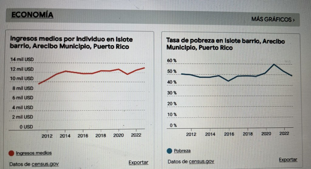 De acuerdo con el último censo poblacional del 2023, en Islote, el salario promedio anual oscila entre los $10 y los 15 mil, una cantidad muy por debajo del nivel de pobreza. Las estadísticas demuestran que la pobreza se debe a falta de estudios y a una gran disparidad entre salario y costo de vida. Las oportunidades son limitadas y las necesidades son muchas. Por eso tantos optan por marcharse.