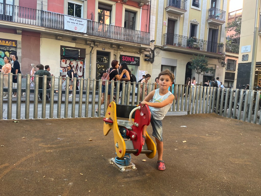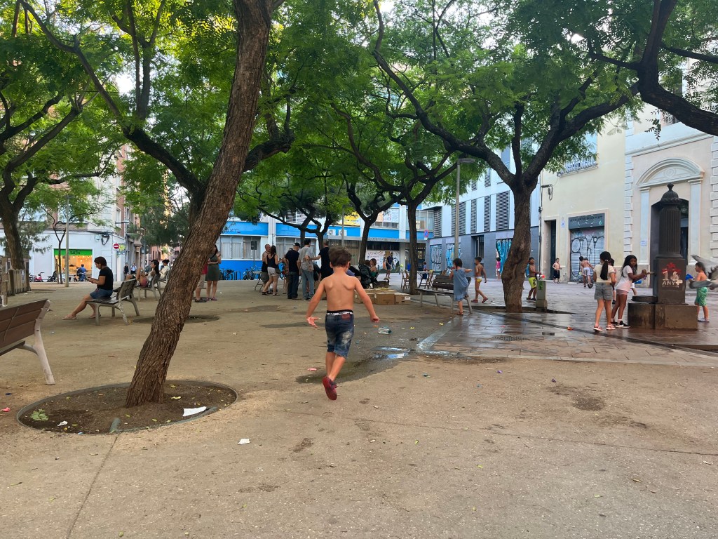 La Plaça del Nord del Barrio de Gràcia, en Barcelona, es un paraíso infantil cualquier tarde de verano.