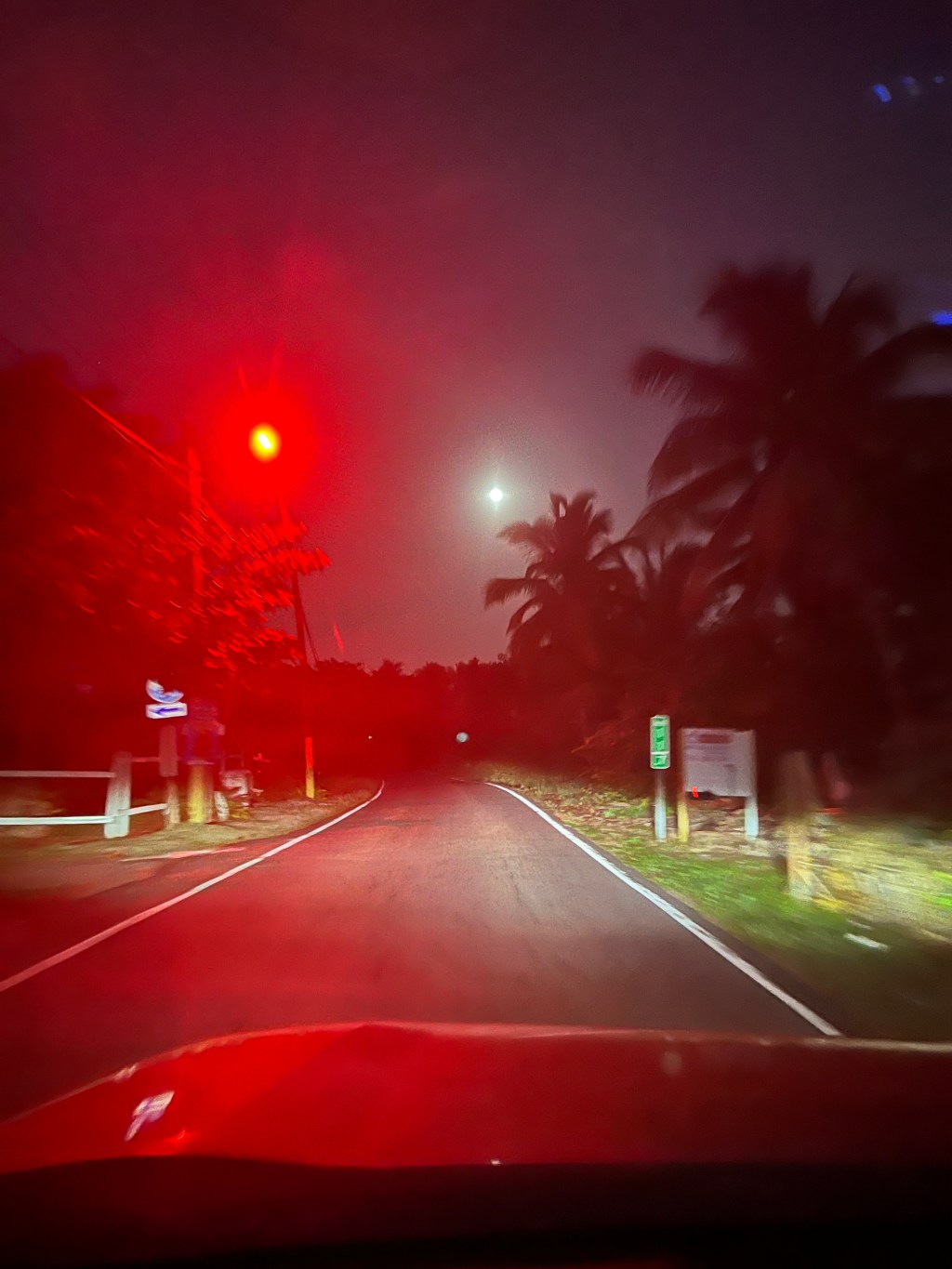 Son las 6:00 de la mañana de una oscura madrugada de invierno caribeño. La luna llena alumbra las olas del Atlántico tenuemente y las bombillas de Navidad de algunas casas siguen brillando a pesar de no haber nadie despierto a estas horas. Junto a los focos rojos que protegen las tortugas en anidaje, las luces de mi carro se reflejan deslizándose por la carretera 681.